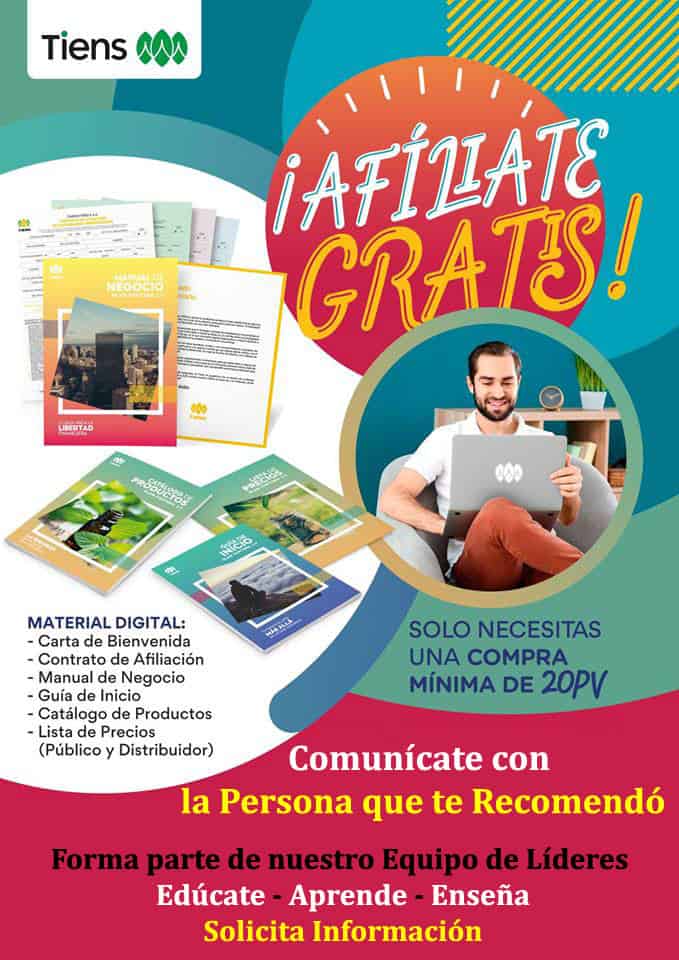 Para Afiliarse a TIENS, se requiere de contar con un Patrocinador quien se encargará de Orientarte, guiarte en la información y Capacitación del Negocio Tiens. Precisamente el Negocio Tiens se desarrolla con un conocimiento previo de lo que significan las Redes de Mercadeo (Network Marketing).