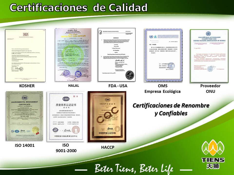 TIENS no es una más de las tantas que hay, precisamente por el grado de Alcalinidad de sus productos son aceptados en más de 190 países, con las autorizaciones correspondientes de sus Ministerios de Salud. Está demás mencionar los Premios Obtenidos por sus productos.